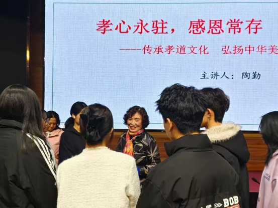 为弘扬中华优秀传统文化,深化大学生对孝道文化的理解与实践,我院于10月30日下午在文化艺术中心举办关心下一代系列专题讲座第六讲,本次讲座由陶勤教授以《孝心永驻,感恩长存》为题主讲,数字智能学院400余名师生参加。