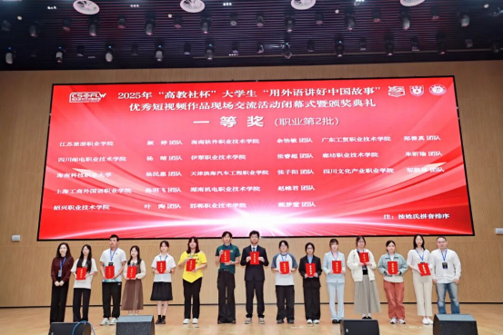本届活动自2025年4月启动以来,围绕“新时代·新变化——时潮奔涌,青春不凡”主题,旨在鼓励大学生立足自身独特视角,将对于过去、当下与未来的思考融入创作实践。大赛吸引了全国29个省、自治区、直辖市的1091所院校参与,通过活动官网提交短视频作品6915件。 在激烈的角逐中,我校学生团队凭借构思精巧的作品、流畅地道的英语表达与紧密高效的团队协作,一路过关斩将,这不仅是对获奖团队成员个人能力的高度认可,更集中彰显了我校学生在英语应用、团队协作与创新实践等核心素养上的卓越水平,也体现了我校在培养具备国际视野高素质技能型人才方面取得的显著成效。