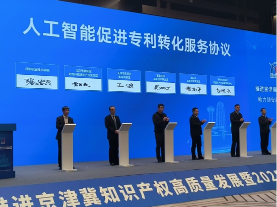 同时,我院与北京市朝阳区时尚科技纺织产业集聚区、天津市东丽区华明高新区、石家庄市高新技术开发区、唐山市高新技术开发区以及邯郸市永年区紧固件产业发展服务中心,共同签署了《人工智能促进专利转化框架合作协议》。依托我院在人工智能技术应用、专利转化服务等方面的资源优势,结合园区发展需求,共同推动专利技术与市场需求精准对接,为企业提供更优质高效的服务,加速高价值专利成果转化落地。《协议》的签署,标志着京津冀三地专利转化合作步入制度创新与模式突破的新阶段。